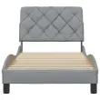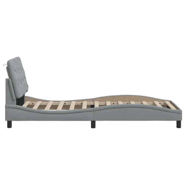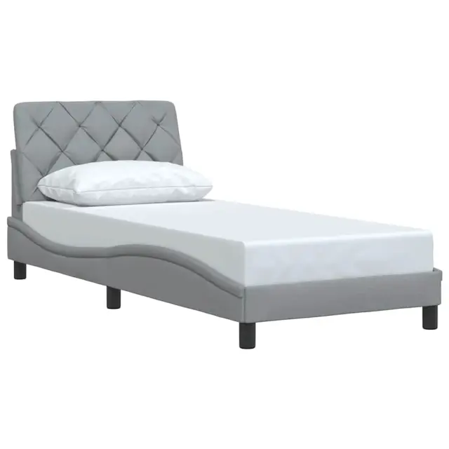 Zagotovite si boljši spanec s tem posteljnim okvirjem! Je prijeten dodatek za vsako spalnico. Mehak in trpežen material: Tkanina iz poliestra ponuja kombinacijo mehkobe, zračnosti in trpežnosti ter vam zagotavlja popolno udobje in prijetnost.Letvice za optimalno podporo: Ta posteljni okvir je opremljen z letvicami, ki zagotavljajo osnovno podporo in zračnost vašega ležišča.Vsestransko vzglavje: Ta posteljni okvir je opremljen z vzglavjem, ki zagotavlja odlično oporo hrbtu, ko sedite v postelji in berete ali gledate televizijo, hkrati pa služi tudi kot dekorativni element.Priročna zasnova: Vzglavna stranica ima zadrgo za preprosto namestitev, pripenjala na zadnji strani pa se lahko uporabijo za pritrditev LED lučk.Valovita stranica: Valoviti videz posteljnega okvirja je eleganten in prefinjen. Dekorju v vašem domu dodaja sodoben in eleganten pridih ter tako postane osrednja točka spalnice. Dobro je vedeti:Vzmetnica ni priložena tej postelji. Ponujamo različno izbiro ležišč. V naši trgovini si lahko ogledate ustrezne vzmetnice.Posteljni okvir:Barva: Svetlo sivaMaterial: Tkanina (100 % poliester), kovina, vezan les, inženirski lesCelotne dimenzije: 208 x 95 x 74,5 cm (D x Š x V)Velikost primerne vzmetnice: 90 x 190 cm (Š x D) (vzmetnica ni priložena)Oblazinjeno vzglavje:Barva: Svetlo sivaMaterial: Blago (100 % poliester)Material polnila: PP vlaknaDimenzije: 92 x 6 x 48 cm (D x Š x V)Paket vsebuje:1 x Posteljni okvir1 x Oblazinjeno vzglavje