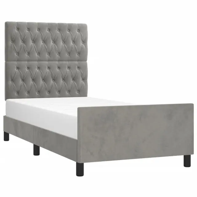Posteljni okvir - Enojna postelja - Postelja za odrasle brez vzmetnice svetlo siv 90x200 cm žamet-J7622