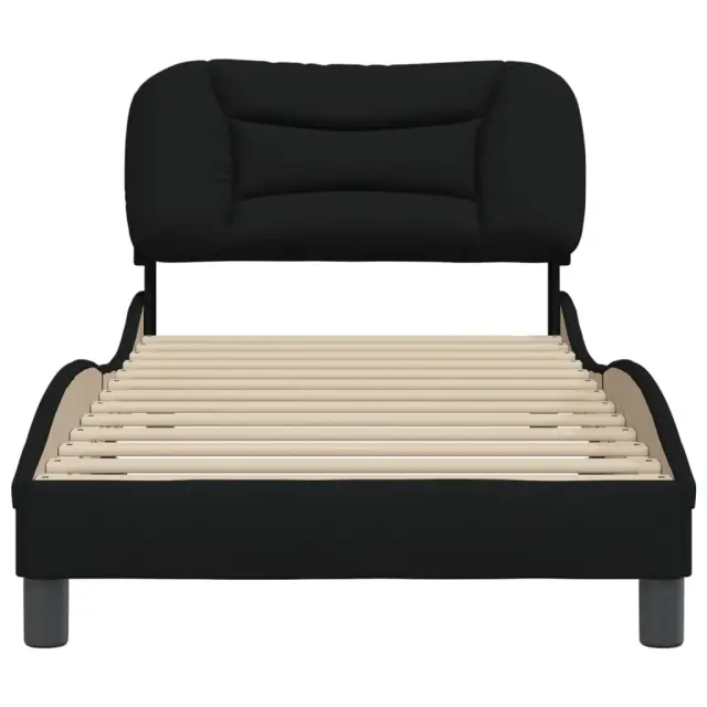 Zagotovite si boljši spanec s tem posteljnim okvirjem z vzglavjem! Je prijeten dodatek za vsako spalnico. Tkanina z dolgo življenjsko dobo: Tkanina je preprostega in čistega videza, hkrati pa je zračna, prijazna do kože in vzdržljiva.Letvice iz vezanega lesa: Letvice iz vezanega lesa omogočajo dobro porazdelitev teže in zagotavljajo, da vzmetnica ostane na mestu ob vsakem zasuku in obračanju med spanjem.Odlična podpora: Vzglavna stranica je napolnjena s PP vlakni za izjemno mehkobo in optimalno udobje ter zagotavlja odlično podporo hrbtu, ko sedite v postelji in berete ali gledate televizijo.Priročna zasnova: Vzglavna stranica ima zadrgo za preprosto namestitev, pripenjala na zadnji strani pa se lahko uporabijo za pritrditev LED lučk.Valovita stranica: Valoviti videz posteljnega okvirja je eleganten in prefinjen. Dekorju v vašem domu dodaja sodoben in eleganten pridih ter tako postane osrednja točka spalnice. Dobro je vedeti:Vzmetnica ni priložena tej postelji. Ponujamo različno izbiro ležišč. V naši trgovini si lahko ogledate ustrezne vzmetnice.Posteljni okvir z vzglavjem:Barva: ČrnaMaterial: Tkanina (100 % poliester), kovina, trdna borovina, vezan les, inženirski lesCelotne dimenzije: 218 x 95 x 74,5 cm (D x Š x V)Velikost primerne vzmetnice: 90 x 200 cm (Š x D) (vzmetnica ni priložena)Oblazinjeno vzglavje:Barva: ČrnaMaterial: Blago (100 % poliester)Material polnila: PP vlaknaDimenzije: 100 x 15 x 48 cm (D x Š x V)Primerna širina vzmetnice: 90 cmPotrebno sestavljanje: DaPaket vsebuje:1 x Posteljni okvir z vzglavjem1 x Oblazinjeno vzglavje