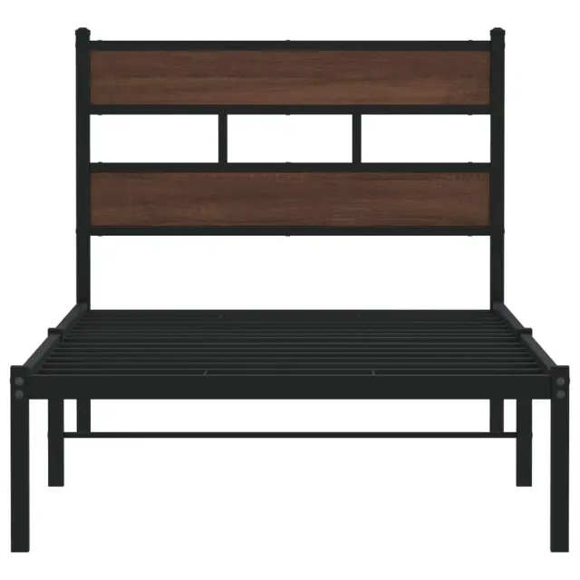 Če iščete trpežen posteljni okvir za svojo spalnico, je ta klasični posteljni okvir z elegantnim in brezčasnim dizajnom popolna izbira!Robustna kovinska konstrukcija: Okvir postelje je izdelan iz jekla. Jeklo je izjemno trd in močan material, ki zagotavlja izjemno trdnost in stabilnost.Kovinske letvice in noge: Kovinski posteljni okvir je opremljen s kovinskimi letvami in sredinskimi nogami, ki ležišču nudijo nujno potrebno oporo in zračnost.Dodaten prostor za shranjevanje: Za vaše udobje ima postelja za goste pod seboj tudi dodaten prostor, da vaše škatle za shranjevanje ne bodo vidne.Odlična opora: Vzglavje zagotavlja odlično oporo hrbtu, ko sedite v postelji in berete ali gledate televizijo.Dobro je vedeti:Vzmetnica ni priložena tej postelji. Ponujamo različno izbiro ležišč. V naši trgovini si lahko ogledate ustrezne vzmetnice.Za čim lažjo montažo je vsakemu izdelku priložen priročnik.Barva: Rjav hrastMaterial: Jeklo, inženirski lesDimenzije: 196 x 95 x 91,5 cm (D x Š x V)Višina prostora pod posteljo: 28 cmVelikost primerne vzmetnice: 90 x 190 cm (Š x D) (vzmetnica ni priložena)Potrebno sestavljanje: Da