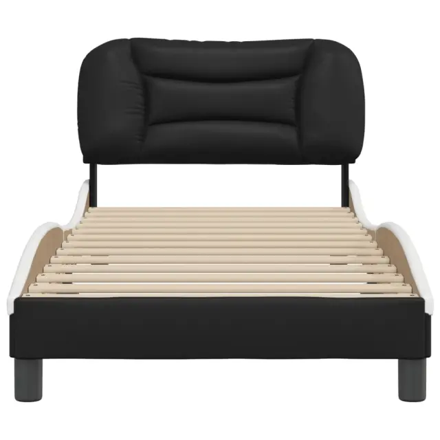 Zagotovite si boljši spanec s tem posteljnim okvirjem z vzglavjem! Je prijeten dodatek za vsako spalnico. Trpežno umetno usnje: Vrhunsko umetno usnje je zelo vzdržljiv material. Je odporno na madeže, zato ga lahko preprosto čistite z vlažno krpo. Gladka površina mu prav tako daje razkošen videz in lepoto pravega usnja.Letvice iz vezanega lesa: Letvice iz vezanega lesa omogočajo dobro porazdelitev teže in zagotavljajo, da vzmetnica ostane na mestu ob vsakem zasuku in obračanju med spanjem.Odlična podpora: Vzglavna stranica je napolnjena s PP vlakni za izjemno mehkobo in optimalno udobje ter zagotavlja odlično podporo hrbtu, ko sedite v postelji in berete ali gledate televizijo.Valovita stranica: Valoviti videz posteljnega okvirja je eleganten in prefinjen. Dekorju v vašem domu dodaja sodoben in eleganten pridih ter tako postane osrednja točka spalnice. Dobro je vedeti:Vzmetnica ni priložena tej postelji. Ponujamo različno izbiro ležišč. V naši trgovini si lahko ogledate ustrezne vzmetnice.Posteljni okvir z vzglavjem:Barva: Črna in belaMaterial: Umetno usnje (75 % polivinilklorid, 5 % bombaž, 20 % poliester), kovina, trdna borovina, vezan lesCelotne dimenzije: 208 x 95 x 74,5 cm (D x Š x V)Velikost primerne vzmetnice: 90 x 190 cm (Š x D) (vzmetnica ni priložena)Oblazinjeno vzglavje:Barva: ČrnaMaterial: Umetno usnje (75 % polivinilklorid, 5 % bombaž, 20 % poliester)Material polnila: PP vlaknaDimenzije: 100 x 15 x 48 cm (D x Š x V)Primerna širina vzmetnice: 90 cmPotrebno sestavljanje: DaPaket vsebuje:1 x Posteljni okvir z vzglavjem1 x Oblazinjeno vzglavje