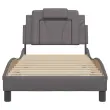 Zagotovite si boljši spanec s tem posteljnim okvirjem z vzglavjem! Je prijeten dodatek za vsako spalnico. Trpežno umetno usnje: Vrhunsko umetno usnje je zelo vzdržljiv material. Je odporno na madeže, zato ga lahko preprosto čistite z vlažno krpo. Gladka površina mu prav tako daje razkošen videz in lepoto pravega usnja.Letvice iz vezanega lesa: Letvice iz vezanega lesa omogočajo dobro porazdelitev teže in zagotavljajo, da vzmetnica ostane na mestu ob vsakem zasuku in obračanju med spanjem.Odlična podpora: Vzglavna stranica je napolnjena s peno za izjemno mehkobo in optimalno udobje ter zagotavlja odlično podporo hrbtu, ko sedite v postelji in berete ali gledate televizijo.Valovita stranica: Valoviti videz posteljnega okvirja je eleganten in prefinjen. Dekorju v vašem domu dodaja sodoben in eleganten pridih ter tako postane osrednja točka spalnice. Dobro je vedeti:Vzmetnica ni priložena tej postelji. Ponujamo različno izbiro ležišč. V naši trgovini si lahko ogledate ustrezne vzmetnice.Posteljni okvir z vzglavjem:Barva: SivaMaterial: Umetno usnje (75 % polivinilklorid, 5 % bombaž, 20 % poliester), kovina, trdna borovina, vezan lesCelotne dimenzije: 218 x 85 x 74,5 cm (D x Š x V)Velikost primerne vzmetnice: 80 x 200 cm (Š x D) (vzmetnica ni priložena)Oblazinjeno vzglavje:Barva: SivaMaterial: Umetno usnje (75 % polivinilklorid, 5 % bombaž, 20 % poliester)Material polnila: PenaDimenzije: 80 x 15 x 49 cm (D x Š x V)Širina primerne vzmetnice: 80 cmPotrebno sestavljanje: DaPaket vsebuje:1 x Posteljni okvir z vzglavjem1 x Oblazinjeno vzglavje