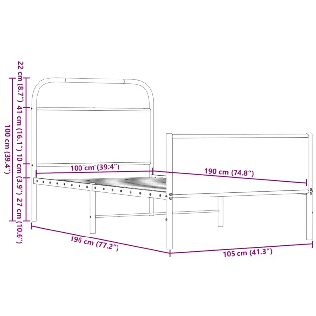 Če iščete trpežen posteljni okvir za svojo spalnico, je ta klasični posteljni okvir z elegantnim in brezčasnim dizajnom popolna izbira! Robustna kovinska konstrukcija: Okvir postelje je izdelan iz jekla. Jeklo je izjemno trd in močan material, ki zagotavlja izjemno trdnost in stabilnost.Stabilne in vzdržljive noge: Ta postelja ima trdne noge, ki zagotavljajo stabilnost, varnost in trdnost.Funkcionalno vzglavje in podnožje: Vzglavje in podnožje posteljnega dna ohranjata ležišče na mestu. Poleg tega vzglavje zagotavlja odlično oporo hrbtu, ko sedite v postelji in berete ali gledate televizijo.Podnožje z letvami za optimalno podporo: Za podporo in zračnost ležišča je posteljni okvir opremljen z letvenim dnom. Dobro je vedeti:Vzmetnica ni vključena v to posteljo. Ponujamo različne vzmetnice. V naši trgovini lahko poiščete ustrezno ležišče.Barva: Rjav hrastMaterial: Jeklo, inženirski lesCelotne dimenzije: 196 x 105 x 100 cm (D x Š x V)Višina prostora pod posteljo: 27 cmVelikost primerne vzmetnice: 100 x 190 cm (Š x D) (vzmetnica ni priložena)Z vzglavjem in podnožjemPotrebno sestavljanje: Da