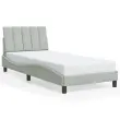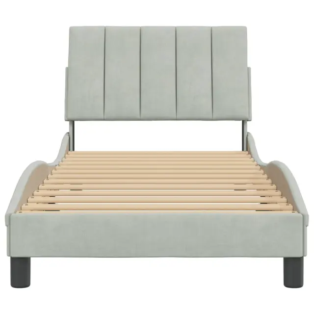 Zagotovite si boljši spanec s tem posteljnim okvirjem z vzglavjem! Je prijeten dodatek za vsako spalnico. Mehak žamet: Žamet je mehka in udobna tkanina, ki je prijetna do kože.Letvice iz vezanega lesa: Letvice iz vezanega lesa omogočajo dobro porazdelitev teže in zagotavljajo, da vzmetnica ostane na mestu ob vsakem zasuku in obračanju med spanjem.Odlična podpora: Vzglavna stranica je napolnjena s peno za izjemno mehkobo in optimalno udobje ter zagotavlja odlično podporo hrbtu, ko sedite v postelji in berete ali gledate televizijo.Priročna zasnova: Vzglavna stranica ima zadrgo za preprosto namestitev, pripenjala na zadnji strani pa se lahko uporabijo za pritrditev LED lučk.Valovita stranica: Valoviti videz posteljnega okvirja je eleganten in prefinjen. Dekorju v vašem domu dodaja sodoben in eleganten pridih ter tako postane osrednja točka spalnice. Dobro je vedeti:Vzmetnica ni priložena tej postelji. Ponujamo različno izbiro ležišč. V naši trgovini si lahko ogledate ustrezne vzmetnice.Posteljni okvir z vzglavjem:Barva: Svetlo sivaMaterial: Žamet (100 % poliester), kovina, trdna borovina, vezan les, inženirski lesCelotne dimenzije: 218 x 95 x 74,5 cm (D x Š x V)Velikost primerne vzmetnice: 90 x 200 cm (Š x D) (vzmetnica ni priložena)Oblazinjeno vzglavje:Barva: Svetlo sivaMaterial: Žamet (100 % poliester)Material polnila: PenaDimenzije: 90 x 3 x 45 cm (D x Š x V)Primerna širina vzmetnice: 90 cmPotrebno sestavljanje: DaPaket vsebuje:1 x Posteljni okvir z vzglavjem1 x Oblazinjeno vzglavje