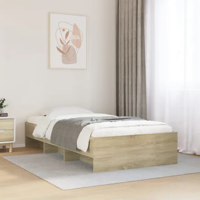 Zagotovite si boljši spanec s tem posteljnim okvirjem! Je prijeten dodatek za vsako spalnico. Vzdržljiv material: Posteljni okvir je izdelan iz inženirskega lesa. Inženirski les se ponaša z izjemno kakovostjo, gladko površino ter močjo, stabilnostjo in odpornostjo na vlago.Podnožje z letvami za optimalno podporo: Za podporo in zračnost ležišča je posteljni okvir opremljen z letvenim dnom.Funkcija shranjevanja: Ta posteljni okvir ima odprte predelke za dobro organizacijo revij, knjig, igrač in drugih manjših predmetov. Dobro je vedeti:Vzmetnica ni priložena tej postelji. Ponujamo različno izbiro ležišč. V naši trgovini si lahko ogledate ustrezne vzmetnice.Barva: Sonoma hrastMaterial posteljnega okvirja: Inženirski lesMaterial letvic: Vezan lesCelotne dimenzije: 203 x 103 x 35 cm (D x Š x V)Dimenzije predelka (vsak): 68,5/60 x 18,5 x 15 cm (D x Š x V)Velikost primerne vzmetnice: 100 x 200 cm (Š x D) (vzmetnica ni priložena)Potrebno sestavljanje: Da