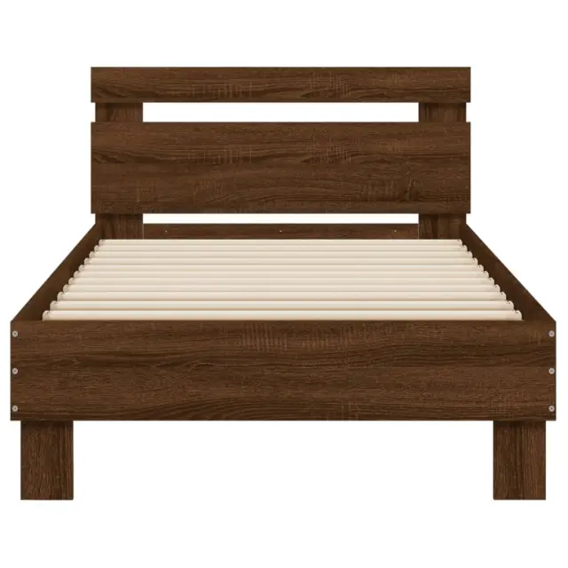 S tem posteljnim okvirjem z vzglavjem in LED lučkami si zagotovite mirnejši spanec! Je prijeten dodatek za vsako spalnico. Vzdržljiv material: Inženirski les se ponaša z izjemno kakovostjo, gladko površino ter močjo, stabilnostjo in odpornostjo na vlago.RGB LED luči: Posteljni okvir je opremljen z živahnimi RGB LED lučkami. Z različnimi prilagodljivimi meniji lahko brez težav spreminjate barvo luči in celo nastavite njihovo samodejno prilagajanje. Te LED lučke ne le poudarjajo sodoben videz posteljnega okvirja, temveč tudi povečujejo njegovo modno privlačnost.Odlična opora: Posteljno vzglavje vam zagotavlja odlično oporo za hrbet, medtem ko sedite v postelji in berete ali gledate televizijo.Trdne letvice: Letvice iz vezanega lesa omogočajo dobro porazdelitev teže in zagotavljajo, da vzmetnica ostane na mestu ob vsakem zasuku in obračanju med spanjem. Dobro je vedeti:Vzmetnica ni priložena tej postelji. Ponujamo različno izbiro ležišč. V naši trgovini si lahko ogledate ustrezne vzmetnice.Izdelek ima priključek USB, ki zahteva certificiran vir napajanja 5 V USB (ni priložen).Barva: Rjav hrastMaterial posteljnega okvirja: Inženirski lesMaterial letvic: Vezan lesCelotne dimenzije: 193 x 95 x 70 cm (D x Š x V)Velikost primerne vzmetnice: 90 x 190 cm (Š x D) (vzmetnica ni priložena)Potrebno sestavljanje: Da Tega izdelka ne uporabljajte, če je katera koli komponenta polomljena, strgana ali manjka. Ta izdelek se napaja z DC 5 V, vendar certificirani 5 V vir napajanja USB ni priložen. Višja napetost lahko povzroči pregrevanje in poškoduje napravo ter povzroči potencialno nevarnost pregrevanja in požara.