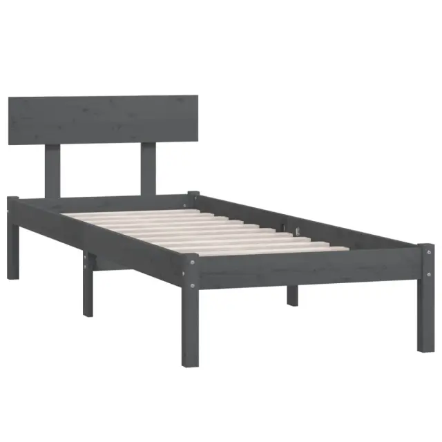 Posteljni okvir - Enojna postelja - Postelja za odrasle siv iz trdne borovine 90x190 cm-J9004