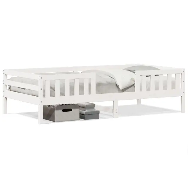 Dodajte svoji spalnici moderen pridih s tem posteljnim okvirjem! Je praktičen in dekorativen dodatek vašemu bivalnemu prostoru. Stabilen in dolgotrajen okvir: Trdna borovina je znana po svoji trdnosti in trajnosti. Ravni vzorci in značilni vozli prispevajo k njenemu rustikalnemu čaru.Letvice iz vezanega lesa: Letvice iz vezanega lesa omogočajo dobro porazdelitev teže in zagotavljajo, da vzmetnica ostane na mestu ob vsakem zasuku in obračanju med spanjem.Moderna zasnova: Svojim notranjim prostorom dodajte moderen stil! Moderen stil notranjih prostorov vključuje čiste linije, minimalističen videz in naravno svetlobo. Dobro je vedeti:Vzmetnica ni priložena tej postelji. Ponujamo različno izbiro ležišč. V naši trgovini si lahko ogledate ustrezne vzmetnice.Barva: BelaMaterial: Trdna borovinaMaterial letvic: Vezan lesCelotne dimenzije: 205,5 x 95,5 x 56 cm (D x Š x V)Velikost primerne vzmetnice: 90 x 200 cm (Š x D) (vzmetnica ni priložena)Potrebno sestavljanje: Da OPOZORILO. Otroške postelje ne postavljajte v bližino virov toplote, oken in drugega pohištva. OPOZORILO. Otroške postelje ne uporabljajte, če je kateri koli del zlomljen, strgan ali manjka.