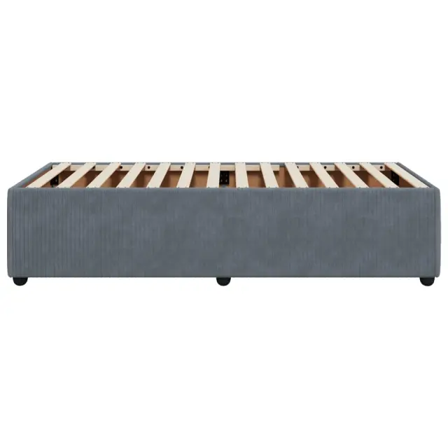 Zagotovite si boljši spanec s tem posteljnim okvirjem! Je prijeten dodatek za vsako spalnico. Mehak in udoben material: Vlažna tkanina iz žameta ima mehko in gladko površino, ki zagotavlja prijeten občutek ter vam zagotavlja toploto in popolno udobje.Letvice za optimalno podporo: Ta posteljni okvir je opremljen z letvicami, ki zagotavljajo osnovno podporo in zračnost vašega ležišča.Stabilne in vzdržljive noge: Ta postelja je podprta z robustnimi nogami, ki zagotavljajo stabilnost, varnost in trdnost. Dobro je vedeti:Vzmetnica ni priložena tej postelji. Ponujamo različno izbiro ležišč. V naši trgovini si lahko ogledate ustrezne vzmetnice.Barva: Temno sivaMaterial: Žamet (100 % poliester), vezan les, konstruiran lesDimenzije: 190 x 90 x 46 cm (D x Š x V)Velikost primerne vzmetnice: 90 x 190 cm (Š x D) (vzmetnica ni priložena)Utrjene plastične nogicePotrebno sestavljanje: Da