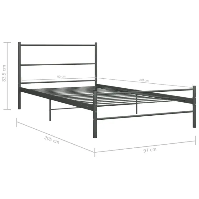 Posteljni okvir - Enojna postelja - Postelja za odrasle siv kovinski 90x200 cm-J9030