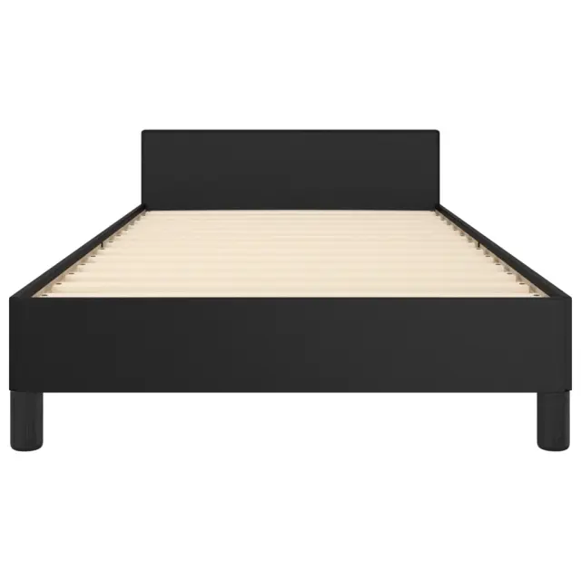 Posteljni okvir - Enojna postelja - Postelja za odrasle z vzglavjem črn 80x200 cm umetno usnje-J9410
