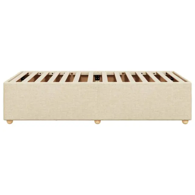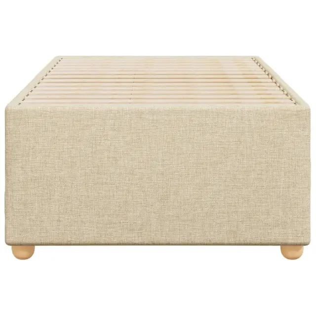 Zagotovite si boljši spanec s tem posteljnim okvirjem! Je prijeten dodatek za vsako spalnico. Mehak in trpežen material: Tkanina iz poliestra združuje mehkobo, zračnost in trpežnost ter vam zagotavlja popolno udobje in prijetnost.Letvice za optimalno podporo: Ta posteljni okvir je opremljen z letvicami, ki zagotavljajo osnovno podporo in zračnost vašega ležišča.Stabilne in vzdržljive noge: Ta postelja je podprta z robustnimi nogami, ki zagotavljajo stabilnost, varnost in trdnost. Dobro je vedeti:Vzmetnica ni priložena tej postelji. Ponujamo različno izbiro ležišč. V naši trgovini si lahko ogledate ustrezne vzmetnice.Barva: KremMaterial: Blago (100 % poliester), vezan les, konstruiran lesDimenzije: 190 x 90 x 46 cm (D x Š x V)Velikost primerne vzmetnice: 90 x 190 cm (Š x D) (vzmetnica ni priložena)Utrjene plastične nogicePotrebno sestavljanje: Da