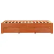 Zagotovite si boljši spanec s tem posteljnim okvirjem! Je prijeten dodatek za vsako spalnico. Stabilen in dolgotrajen okvir: Trdna borovina je znana po svoji trdnosti in trajnosti. Ravni vzorci in značilni vozli prispevajo k njenemu rustikalnemu čaru.Podnožje z letvami za optimalno podporo: Za podporo in zračnost ležišča je posteljni okvir opremljen z letvenim dnom.Stabilne in vzdržljive noge: Ta postelja je podprta z robustnimi nogami, ki zagotavljajo stabilnost, varnost in trdnost.Funkcija shranjevanja: Ta posteljni okvir ima predale za dobro organizacijo revij, knjig, igrač in drugih manjših predmetov. Dobro je vedeti:Vzmetnica ni priložena tej postelji. Ponujamo različno izbiro ležišč. V naši trgovini si lahko ogledate ustrezne vzmetnice.Barva: Voščeno rjavaMaterial posteljnega okvirja: Trdna borovinaCelotne dimenzije: 203,5 x 103,5 x 41 cm (D x Š x V)Dimenzije predala (vsak): 62 x 36 x 18,5 cm (D x Š x V)Velikost primerne vzmetnice: 100 x 200 cm (Š x D) (vzmetnica ni priložena)Z letvenim podomPotrebno sestavljanje: Da