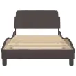 Zagotovite si boljši spanec s tem posteljnim okvirjem z vzglavjem! Je prijeten dodatek za vsako spalnico. Trpežno blago: Blago zagotavlja preprost in čist videz, poleg tega pa je zračno in trpežno.Podporne noge: Postelja je podprta s čvrstimi nogami, ki zagotavljajo njeno stabilnost, varnost in trdnost.Letvice iz vezanega lesa: Letvice iz vezanega lesa omogočajo dobro porazdelitev teže in zagotavljajo, da vzmetnica ostane na mestu ob vsakem zasuku in obračanju med spanjem.Udobna opora: To vzglavje za posteljo vam zagotavlja odlično oporo za hrbet, ko sedite na postelji in berete ali gledate filme.Valovita stranica: Valoviti videz posteljnega okvirja je eleganten in prefinjen. Dekorju v vašem domu dodaja sodoben in eleganten pridih ter tako postane osrednja točka spalnice. Dobro je vedeti:Vzmetnica ni priložena tej postelji. Ponujamo različno izbiro ležišč. V naši trgovini si lahko ogledate ustrezne vzmetnice.Barva: Temno rjavaMaterial: Tkanina (100 % poliester), kovina, vezan les, inženirski lesCelotne dimenzije: 218 x 105 x 74,5 cm (D x Š x V)Velikost primerne vzmetnice: 100 x 200 cm (Š x D) (vzmetnica ni priložena)Potrebno sestavljanje: Da