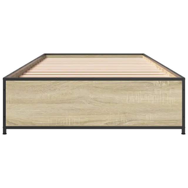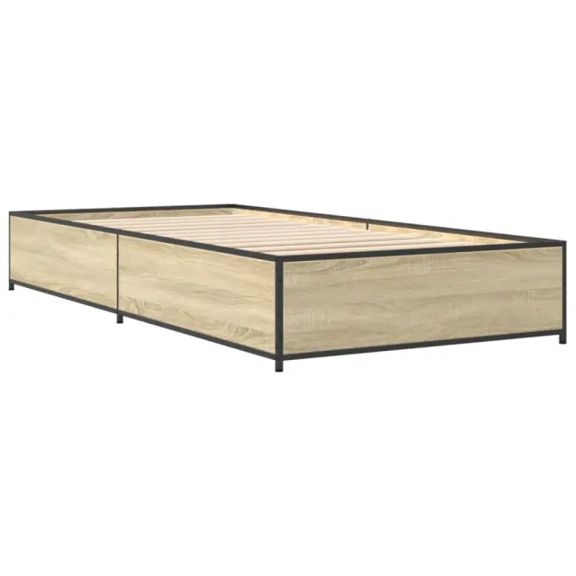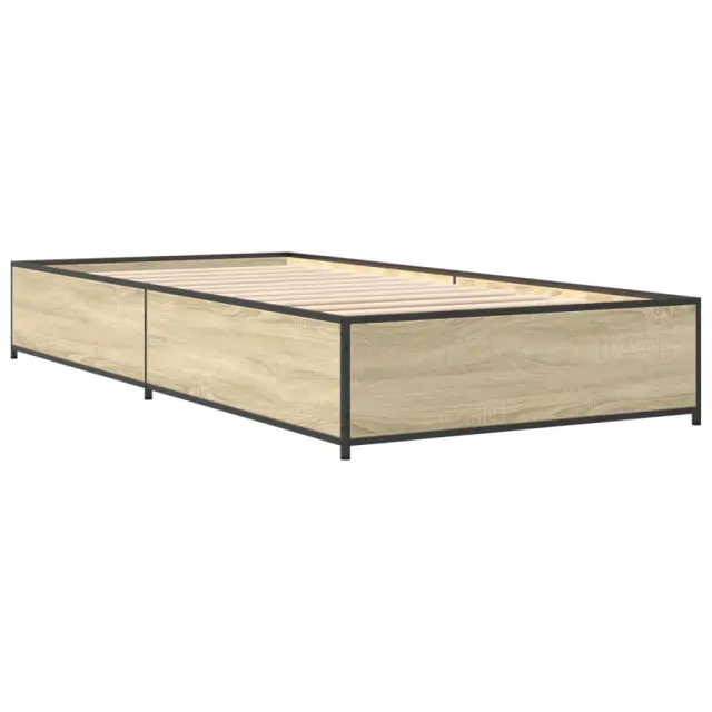 Zagotovite si boljši spanec s tem posteljnim okvirjem! Je prijeten dodatek za vsako spalnico. Vzdržljiv material: Inženirski les se ponaša z izjemno kakovostjo, gladko površino ter močjo, stabilnostjo in odpornostjo na vlago.Kovinske noge: Postelja je podprta s čvrstimi kovinskimi nogami, ki zagotavljajo njeno stabilnost, varnost in trdnost.Letvice iz vezanega lesa: Letvice iz vezanega lesa omogočajo dobro porazdelitev teže in zagotavljajo, da vzmetnica ostane na mestu ob vsakem zasuku in obračanju med spanjem. Dobro je vedeti:Vzmetnica ni priložena tej postelji. Ponujamo različno izbiro ležišč. V naši trgovini si lahko ogledate ustrezne vzmetnice.Barva: Sonoma hrastMaterial posteljnega okvirja: Inženirski les, kovinaMaterial letvic: Vezan lesCelotne dimenzije: 193 x 78 x 29 cm (D x Š x V)Velikost primerne vzmetnice: 75 x 190 cm (Š x D) (vzmetnica ni priložena)Potrebno sestavljanje: Da