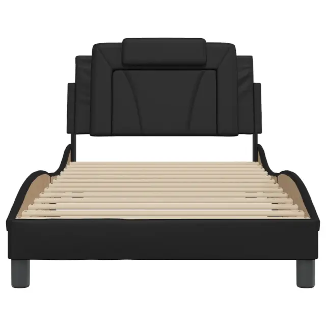 Zagotovite si boljši spanec s tem posteljnim okvirjem z vzglavjem! Je prijeten dodatek za vsako spalnico. Trpežno umetno usnje: Vrhunsko umetno usnje je zelo vzdržljiv material. Je odporno na madeže, zato ga lahko preprosto čistite z vlažno krpo. Gladka površina mu prav tako daje razkošen videz in lepoto pravega usnja.Letvice iz vezanega lesa: Letvice iz vezanega lesa omogočajo dobro porazdelitev teže in zagotavljajo, da vzmetnica ostane na mestu ob vsakem zasuku in obračanju med spanjem.Odlična podpora: Vzglavna stranica je napolnjena s peno za izjemno mehkobo in optimalno udobje ter zagotavlja odlično podporo hrbtu, ko sedite v postelji in berete ali gledate televizijo.Valovita stranica: Valoviti videz posteljnega okvirja je eleganten in prefinjen. Dekorju v vašem domu dodaja sodoben in eleganten pridih ter tako postane osrednja točka spalnice. Dobro je vedeti:Vzmetnica ni priložena tej postelji. Ponujamo različno izbiro ležišč. V naši trgovini si lahko ogledate ustrezne vzmetnice.Posteljni okvir z vzglavjem:Barva: ČrnaMaterial: Umetno usnje (75 % polivinilklorid, 5 % bombaž, 20 % poliester), kovina, trdna borovina, vezan lesCelotne dimenzije: 218 x 105 x 74,5 cm (D x Š x V)Velikost primerne vzmetnice: 100 x 200 cm (Š x D) (vzmetnica ni priložena)Oblazinjeno vzglavje:Barva: ČrnaMaterial: Umetno usnje (75 % polivinilklorid, 5 % bombaž, 20 % poliester)Material polnila: PenaDimenzije: 100 x 15 x 49 cm (D x Š x V)Širina primerne vzmetnice: 100 cmPotrebno sestavljanje: DaPaket vsebuje:1 x Posteljni okvir z vzglavjem1 x Oblazinjeno vzglavje