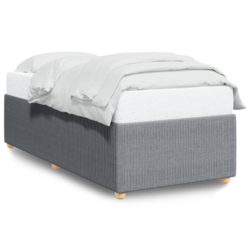 Zagotovite si boljši spanec s tem posteljnim okvirjem! Je prijeten dodatek za vsako spalnico. Mehak in trpežen material: Tkanina iz poliestra združuje mehkobo, zračnost in trpežnost ter vam zagotavlja popolno udobje in prijetnost.Letvice za optimalno podporo: Ta posteljni okvir je opremljen z letvicami, ki zagotavljajo osnovno podporo in zračnost vašega ležišča.Stabilne in vzdržljive noge: Ta postelja je podprta z robustnimi nogami, ki zagotavljajo stabilnost, varnost in trdnost. Dobro je vedeti:Vzmetnica ni priložena tej postelji. Ponujamo različno izbiro ležišč. V naši trgovini si lahko ogledate ustrezne vzmetnice.Barva: Svetlo sivaMaterial: Blago (100 % poliester), vezan les, konstruiran lesDimenzije: 200 x 100 x 46 cm (D x Š x V)Velikost primerne vzmetnice: 100 x 200 cm (Š x D) (vzmetnica ni priložena)Utrjene plastične nogicePotrebno sestavljanje: Da