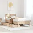 Zagotovite si boljši spanec s tem posteljnim okvirjem! Je prijeten dodatek za vsako spalnico. Stabilen in dolgotrajen okvir: Trdna borovina je znana po svoji trdnosti in trajnosti. Ravni vzorci in značilni vozli prispevajo k njenemu rustikalnemu čaru.Podnožje z letvami za optimalno podporo: Za podporo in zračnost ležišča je posteljni okvir opremljen z letvenim dnom.Vsestransko vzglavje: Ta posteljni okvir je opremljen z vzglavjem, ki zagotavlja odlično oporo hrbtu, ko sedite v postelji in berete ali gledate televizijo, hkrati pa služi tudi kot dekorativni element.Popolnoma izkoriščen prostor: Ta posteljni okvir ima spodaj dva predala, ki omogočata shranjevanje predmetov, kot so dodatna posteljnina, sezonska oblačila in igrače.Preprosto manevriranje: Ta predal za shranjevanje pod posteljo ima štiri kolesa, ki zagotavljajo gladko in lahkotno manevriranje pri drsenju pod posteljo in izpod nje. Dobro je vedeti:Vzmetnica ni priložena tej postelji. Ponujamo različno izbiro ležišč. V naši trgovini si lahko ogledate ustrezne vzmetnice.Potrebno sestavljanje: DaPosteljni okvir z vzglavjem:Material: Trdna borovina (neobdelana)Material letvic: Vezan lesDimenzije: 205,5 x 95,5 x 81 cm (D x Š x V)Velikost primerne vzmetnice: 90 x 200 cm (Š x D) (vzmetnica ni priložena)Predal:Material: Trdna borovina (neobdelana)Zunanje dimenzije: 95 x 55 x 16 cm (Š x G x V)Notranje dimenzije: 86,5 x 52,5 x 10 cm (Š x G x V)Maks. nosilnost (vsaka): 20 kgS štirimi kolesiPaket vsebuje:1 x Posteljni okvir z vzglavjem2 x Predal