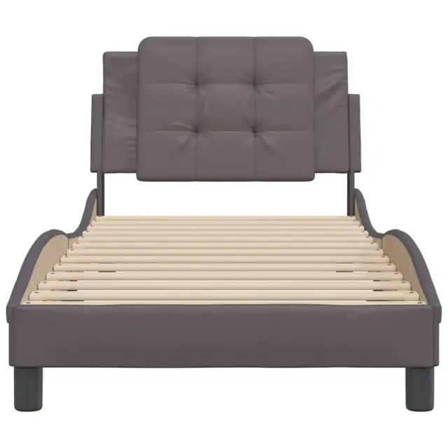 Zagotovite si boljši spanec s tem posteljnim okvirjem z vzglavjem! Je prijeten dodatek za vsako spalnico. Trpežno umetno usnje: Vrhunsko umetno usnje je zelo vzdržljiv material. Je odporno na madeže, zato ga lahko preprosto čistite z vlažno krpo. Gladka površina mu prav tako daje razkošen videz in lepoto pravega usnja.Letvice iz vezanega lesa: Letvice iz vezanega lesa omogočajo dobro porazdelitev teže in zagotavljajo, da vzmetnica ostane na mestu ob vsakem zasuku in obračanju med spanjem.Odlična podpora: Vzglavna stranica je napolnjena s peno za izjemno mehkobo in optimalno udobje ter zagotavlja odlično podporo hrbtu, ko sedite v postelji in berete ali gledate televizijo.Priročna zasnova: Oblazinjeno vzglavje ima zadrgo za enostavno namestitev.Valovita stranica: Valoviti videz posteljnega okvirja je eleganten in prefinjen. Dekorju v vašem domu dodaja sodoben in eleganten pridih ter tako postane osrednja točka spalnice. Dobro je vedeti:Vzmetnica ni priložena tej postelji. Ponujamo različno izbiro ležišč. V naši trgovini si lahko ogledate ustrezne vzmetnice.Posteljni okvir z vzglavjem:Barva: SivaMaterial: Umetno usnje (75 % polivinilklorid, 5 % bombaž, 20 % poliester), kovina, trdna borovina, vezan les, inženirski lesCelotne dimenzije: 208 x 95 x 74,5 cm (D x Š x V)Velikost primerne vzmetnice: 90 x 190 cm (Š x D) (vzmetnica ni priložena)Oblazinjeno vzglavje:Barva: SivaMaterial: Umetno usnje (75 % polivinilklorid, 5 % bombaž, 20 % poliester)Material polnila: PenaDimenzije: 90 x 3 x 48 cm (D x Š x V)Primerna širina vzmetnice: 90 cmPotrebno sestavljanje: DaPaket vsebuje:1 x Posteljni okvir z vzglavjem1 x Oblazinjeno vzglavje
