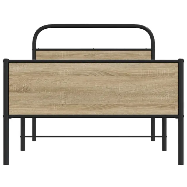 Če iščete trpežen posteljni okvir za svojo spalnico, je ta klasični posteljni okvir z elegantnim in brezčasnim dizajnom popolna izbira! Robustna kovinska konstrukcija: Okvir postelje je izdelan iz jekla. Jeklo je izjemno trd in močan material, ki zagotavlja izjemno trdnost in stabilnost.Stabilne in vzdržljive noge: Ta postelja ima trdne noge, ki zagotavljajo stabilnost, varnost in trdnost.Funkcionalno vzglavje in podnožje: Vzglavje in podnožje posteljnega dna ohranjata ležišče na mestu. Poleg tega vzglavje zagotavlja odlično oporo hrbtu, ko sedite v postelji in berete ali gledate televizijo.Podnožje z letvami za optimalno podporo: Za podporo in zračnost ležišča je posteljni okvir opremljen z letvenim dnom. Dobro je vedeti:Vzmetnica ni vključena v to posteljo. Ponujamo različne vzmetnice. V naši trgovini lahko poiščete ustrezno ležišče.Barva: Sonoma hrastMaterial: Jeklo, inženirski lesCelotne dimenzije: 207 x 112 x 100 cm (D x Š x V)Višina prostora pod posteljo: 27 cmPrimerna velikost vzmetnice: 107 x 203 cm (Š x D) (vzmetnica ni priložena)Z vzglavjem in podnožjemPotrebno sestavljanje: Da