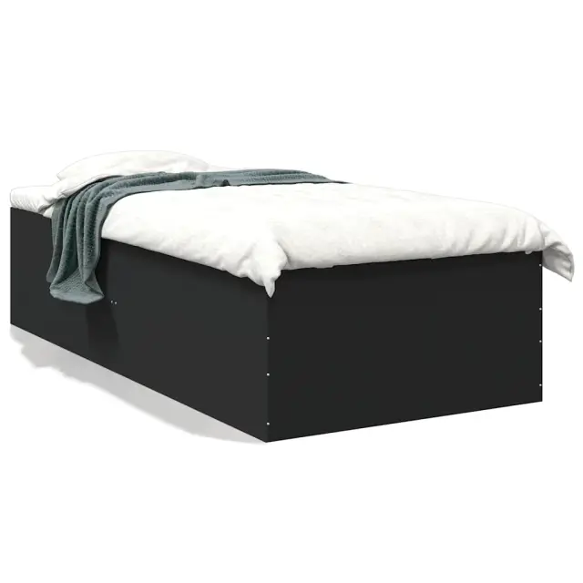 Zagotovite si boljši spanec s tem posteljnim okvirjem! Je prijeten dodatek za vsako spalnico. Vzdržljiv material: Inženirski les se ponaša z izjemno kakovostjo, gladko površino ter močjo, stabilnostjo in odpornostjo na vlago.Letvice za optimalno podporo: Okvir postelje je opremljen z letvicami, ki zagotavljajo osnovno podporo in zračnost vašega ležišča.Moderna zasnova: Svojim notranjim prostorom dodajte moderen stil! Moderen stil notranjih prostorov vključuje čiste linije, minimalističen videz in naravno svetlobo. Dobro je vedeti:Vzmetnica ni priložena tej postelji. Ponujamo različno izbiro ležišč. V naši trgovini si lahko ogledate ustrezne vzmetnice.Barva: ČrnaMaterial posteljnega okvirja: Inženirski lesMaterial letvic: Vezan lesCelotne dimenzije: 203 x 93 x 45 cm (D x Š x V)Velikost primerne vzmetnice: 90 x 200 cm (Š x D) (vzmetnica ni priložena)Potrebno sestavljanje: Da