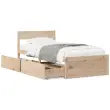 Dodajte svoji spalnici moderen pridih s tem posteljnim okvirjem s predali! Predstavlja praktičen in dekorativen dodatek za vaš bivalni prostor. Stabilen in dolgotrajen okvir: Trdna borovina je znana po svoji trdnosti in trajnosti. Ravni vzorci in značilni vozli prispevajo k njenemu rustikalnemu čaru.Letvice iz vezanega lesa: Letvice iz vezanega lesa omogočajo dobro porazdelitev teže in zagotavljajo, da vzmetnica ostane na mestu ob vsakem zasuku in obračanju med spanjem.Funkcija shranjevanja: Priloženi posteljni predali nudijo dovolj prostora za shranjevanje potrebščin, da bo soba čista in urejena.Vsestransko vzglavje: Ta posteljni okvir je opremljen z vzglavjem, ki zagotavlja odlično oporo hrbtu, ko sedite v postelji in berete ali gledate televizijo, hkrati pa služi tudi kot dekorativni element. Dobro je vedeti:Vzmetnica ni priložena tej postelji. Ponujamo različno izbiro ležišč. V naši trgovini si lahko ogledate ustrezne vzmetnice.Material: Trdna borovina (neobdelana)Material letvic: Vezan lesCelotne dimenzije: 195,5 x 95,5 x 78 cm (D x Š x V)Velikost primerne vzmetnice: 90 x 190 cm (Š x D) (vzmetnica ni priložena)Dimenzije posteljnega predala: 90,5 x 47 x 25,5 cm (D x Š x V)Potrebno sestavljanje: DaPaket vsebuje:1 x Posteljni okvir2 x Posteljni predal