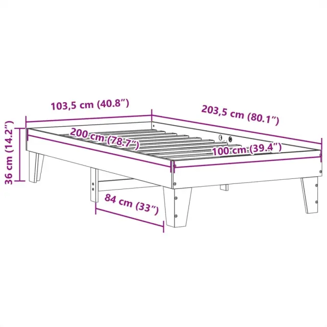 Zagotovite si boljši spanec s tem posteljnim okvirjem! Je prijeten dodatek za vsako spalnico. Stabilen in dolgotrajen okvir: Trdna borovina je znana po svoji trdnosti in trajnosti. Ravni vzorci in značilni vozli prispevajo k njenemu rustikalnemu čaru.Podnožje z letvami za optimalno podporo: Za podporo in zračnost ležišča je posteljni okvir opremljen z letvenim dnom.Dodaten prostor za shranjevanje: Za večje udobje je pod leseno posteljo dodaten prostor, v katerem lahko shranite škatle za shranjevanje, da bodo lepo skrite.Stabilne in vzdržljive noge: Ta postelja je podprta z robustnimi nogami, ki zagotavljajo stabilnost, varnost in trdnost. Dobro je vedeti:Vzmetnica ni priložena tej postelji. Ponujamo različno izbiro ležišč. V naši trgovini si lahko ogledate ustrezne vzmetnice.Barva: BelaMaterial: Trdna borovinaMaterial letvic: Vezan lesDimenzije: 203,5 x 103,5 x 36 cm (D x Š x V)Velikost primerne vzmetnice: 100 x 200 cm (Š x D) (vzmetnica ni priložena)Potrebno sestavljanje: Da