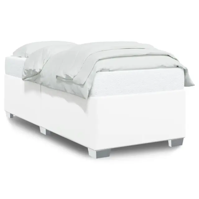 Zagotovite si boljši spanec s tem posteljnim okvirjem! Je prijeten dodatek za vsako spalnico. Dolgotrajno in enostavno vzdrževanje: Umetno usnje je zelo trpežen material, ki je odporen na madeže, zato ga zlahka očistite z vlažno krpo. Njegova gladka površina mu daje eleganten videz, ki spominja na pravo usnje.Letvice za optimalno podporo: Ta posteljni okvir je opremljen z letvicami, ki zagotavljajo osnovno podporo in zračnost vašega ležišča.Stabilne in vzdržljive noge: Ta postelja je podprta z robustnimi nogami, ki zagotavljajo stabilnost, varnost in trdnost. Dobro je vedeti:Vzmetnica ni priložena tej postelji. Ponujamo različno izbiro ležišč. V naši trgovini si lahko ogledate ustrezne vzmetnice.Barva: BelaMaterial: Umetno usnje (75 % polivinilklorid, 5 % bombaž, 20 % poliester), vezan les, konstruiran lesDimenzije: 190 x 90 x 46 cm (D x Š x V)Velikost primerne vzmetnice: 90 x 190 cm (Š x D) (vzmetnica ni priložena)Utrjene plastične nogicePotrebno sestavljanje: Da