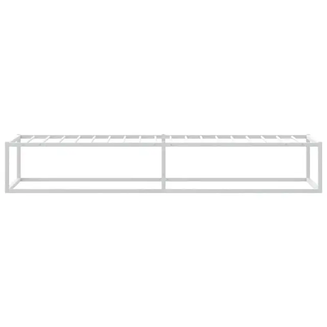 S tem kovinskim posteljnim okvirjem lahko v svoji spalnici ustvarite elegantno in klasično vzdušje! Stabilen in dolgotrajen okvir: Kovinski okvir, prevlečen s prašnim premazom, je močan, stabilen, vzdržljiv, odporen proti koroziji in ostrim vremenskim razmeram ter zagotavlja dolgotrajno delovanje.Podnožje z letvami za optimalno podporo: Za podporo in zračnost ležišča je posteljni okvir opremljen z letvenim dnom.Dodaten prostor za shranjevanje: Za večje udobje je pod posteljo dodaten prostor, v katerem lahko shranite škatle za shranjevanje, da bodo lepo skrite. Dobro je vedeti:Vzmetnica ni priložena tej postelji. Ponujamo različno izbiro ležišč. V naši trgovini si lahko ogledate ustrezne vzmetnice.Barva: BelaMaterial: Kovina s prašnim premazomDimenzije: 205 x 105 x 32,5 cm (D x Š x V)Spalna višina, od tal: 32,5 cmVelikost primerne vzmetnice: 100 x 200 cm (Š x D) (vzmetnica ni priložena)Potrebno sestavljanje: Da