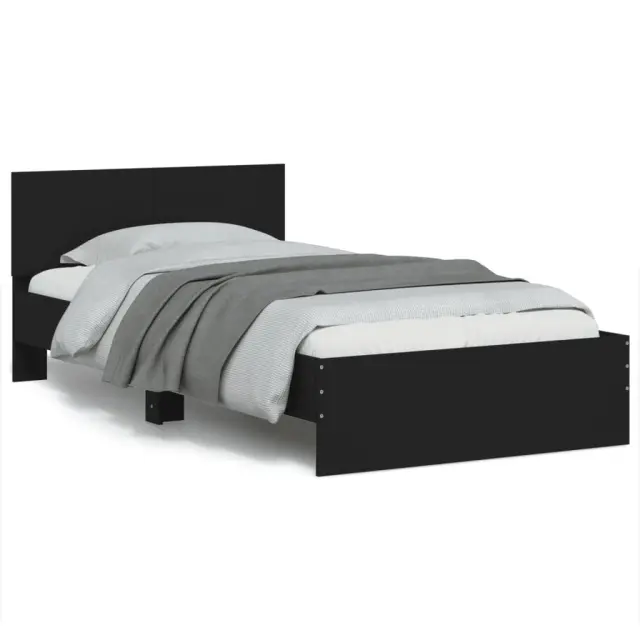 Zagotovite si boljši spanec s tem posteljnim okvirjem z vzglavjem! Je prijeten dodatek za vsako spalnico. Vzdržljiv material: Inženirski les se ponaša z izjemno kakovostjo, gladko površino ter močjo, stabilnostjo in odpornostjo na vlago.Odlična opora: Posteljno vzglavje vam zagotavlja odlično oporo za hrbet, medtem ko sedite v postelji in berete ali gledate televizijo.Trdne letvice: Letvice iz vezanega lesa omogočajo dobro porazdelitev teže in zagotavljajo, da vzmetnica ostane na mestu ob vsakem zasuku in obračanju med spanjem. Dobro je vedeti:Vzmetnica ni priložena tej postelji. Ponujamo različno izbiro ležišč. V naši trgovini si lahko ogledate ustrezne vzmetnice.Barva: ČrnaMaterial posteljnega okvirja: Inženirski lesMaterial letvic: Vezan lesSkupne mere: 203 x 104 x 70 cm (D x Š x V)Velikost primerne vzmetnice: 100 x 200 cm (Š x D) (vzmetnica ni priložena)Potrebno sestavljanje: Da
