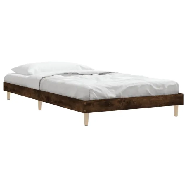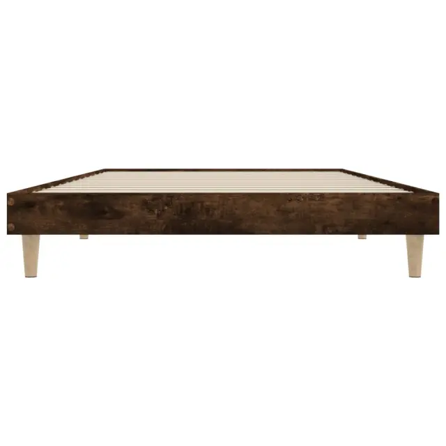 Zagotovite si boljši spanec s tem posteljnim okvirjem! Je prijeten dodatek za vsako spalnico. Vzdržljiv material: Inženirski les se ponaša z izjemno kakovostjo, gladko površino ter močjo, stabilnostjo in odpornostjo na vlago. Lesene noge: Postelja je podprta s čvrstimi lesenimi nogami, ki zagotavljajo njeno stabilnost, varnost in trdnost. Letvice iz vezanega lesa: Letvice iz vezanega lesa omogočajo dobro porazdelitev teže in zagotavljajo, da vzmetnica ostane na mestu ob vsakem zasuku in obračanju med spanjem. Dobro je vedeti: Vzmetnica ni priložena tej postelji. Ponujamo različno izbiro ležišč. V naši trgovini si lahko ogledate ustrezne vzmetnice.Barva: Dimljeni hrastMaterial posteljnega okvirja: Inženirski les, trden les evkaliptusaMaterial letvic: Vezan lesCelotne dimenzije: 203 x 93 x 20 cm (D x Š x V)Velikost primerne vzmetnice: 90 x 200 cm (Š x D) (vzmetnica ni priložena)Potrebno sestavljanje: Da