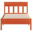 S tem lesenim posteljnim okvirjem lahko uživate v odličnem spancu! To je praktičen in dekorativen dodatek za vaše notranje prostore. Trdna borovina: Trdna borovina je čudovit naravni material. Borovina ima ravne vzorce, grče pa dajejo materialu njegov značilen, rustikalen videz.Letvice iz vezanega lesa: Letvice iz vezanega lesa omogočajo dobro porazdelitev teže in zagotavljajo, da vzmetnica ostane na mestu ob vsakem zasuku in obračanju med spanjem.Odlična opora: Vzglavje lesene postelje zagotavlja odlično oporo hrbtu, ko sedite v postelji in berete ali gledate televizijo. Dobro je vedeti:Vzmetnice niso priložene tej postelji. Ponujamo različno izbiro ležišč. V naši trgovini si lahko ogledate ustrezne vzmetnice.Barva: Voščeno rjavaMaterial: Trdna borovinaMaterial letvic: Vezan lesCelotne dimenzije: 205,5 x 105,5 x 81 cm (D x Š x V)Velikost primerne vzmetnice: 100 x 200 cm (Š x D) (vzmetnica ni priložena)Potrebno sestavljanje: Da