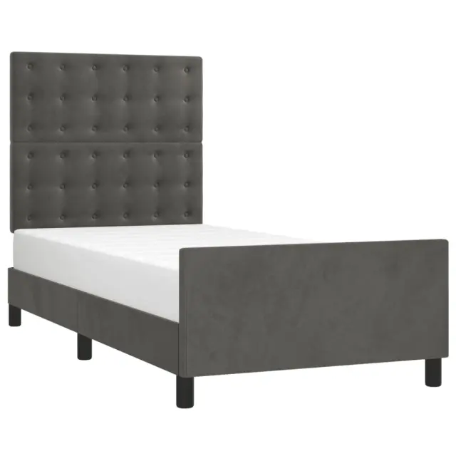 Zagotovite si boljši spanec s tem posteljnim okvirjem z vzglavjem! Je prijeten dodatek za vsako spalnico. Mehak žamet: Žamet je mehka in razkošna tkanina, ki jo prepoznamo po gostem kupu enakomerno rezanih gladkih vlaken. Žametna tkanina ima značilen mehak občutek, zaradi česar je prijetna na dotik.Nastavljiva višina: Vzglavje postelje je nastavljivo po višini po vaših željah.Podporne noge: Postelja je podprta s čvrstimi nogami, ki zagotavljajo njeno stabilnost, varnost in trdnost.Letvice iz vezanega lesa: Letvice iz vezanega lesa omogočajo dobro porazdelitev teže in zagotavljajo, da vzmetnica ostane na mestu ob vsakem zasuku in obračanju med spanjem.Udobna opora: To vzglavje za posteljo vam zagotavlja odlično oporo za hrbet, ko sedite na postelji in berete ali gledate filme. Opomba:Paket vsebuje samo posteljni okvir. Vzmetnica ni priložena. V naši trgovini si lahko ogledate ustrezne vzmetnice.Vsakemu izdelku je priložen priročnik za enostavno sestavljanje.Barva: Temno sivaMaterial: Žamet (100 % poliester), trden macesnov les, vezan les, inženirski lesMaterial polnila: PenaCelotne dimenzije: 203 x 83 x 118/128 cm (D x Š x V)Velikost primerne vzmetnice: 80 x 200 cm (Š x D) (vzmetnica ni priložena)Paket vsebuje:1 x Posteljni okvir z vznožjem1 x Vzglavje