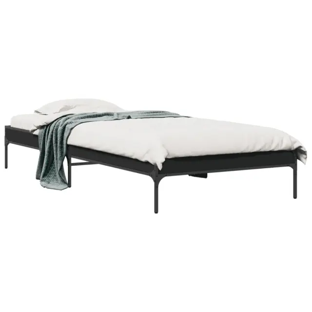 Zagotovite si boljši spanec s tem posteljnim okvirjem! Je prijeten dodatek za vsako spalnico. Vzdržljiv material: Inženirski les se ponaša z izjemno kakovostjo, gladko površino ter močjo, stabilnostjo in odpornostjo na vlago.Kovinske noge: Postelja je podprta s čvrstimi kovinskimi nogami, ki zagotavljajo njeno stabilnost, varnost in trdnost.Letvice iz vezanega lesa: Letvice iz vezanega lesa omogočajo dobro porazdelitev teže in zagotavljajo, da vzmetnica ostane na mestu ob vsakem zasuku in obračanju med spanjem. Dobro je vedeti:Vzmetnica ni priložena tej postelji. Ponujamo različno izbiro ležišč. V naši trgovini si lahko ogledate ustrezne vzmetnice.Barva: ČrnaMaterial posteljnega okvirja: Inženirski les, kovinaMaterial letvic: Vezan lesCelotne dimenzije: 203 x 93 x 30 cm (D x Š x V)Velikost primerne vzmetnice: 90 x 200 cm (Š x D) (vzmetnica ni priložena)Potrebno sestavljanje: Da
