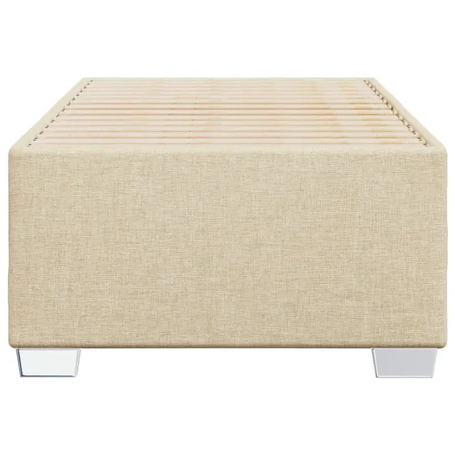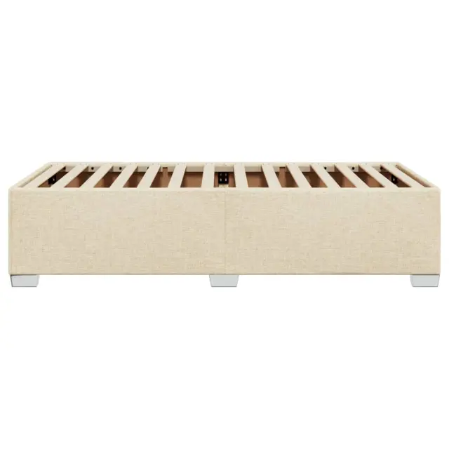 Zagotovite si boljši spanec s tem posteljnim okvirjem! Je prijeten dodatek za vsako spalnico. Mehak in trpežen material: Tkanina iz poliestra združuje mehkobo, zračnost in trpežnost ter vam zagotavlja popolno udobje in prijetnost.Letvice za optimalno podporo: Ta posteljni okvir je opremljen z letvicami, ki zagotavljajo osnovno podporo in zračnost vašega ležišča.Stabilne in vzdržljive noge: Ta postelja je podprta z robustnimi nogami, ki zagotavljajo stabilnost, varnost in trdnost. Dobro je vedeti:Vzmetnica ni priložena tej postelji. Ponujamo različno izbiro ležišč. V naši trgovini si lahko ogledate ustrezne vzmetnice.Barva: KremMaterial: Blago (100 % poliester), vezan les, konstruiran lesDimenzije: 200 x 80 x 46 cm (D x Š x V)Velikost primerne vzmetnice: 80 x 200 cm (Š x D) (vzmetnica ni priložena)Utrjene plastične nogicePotrebno sestavljanje: Da