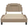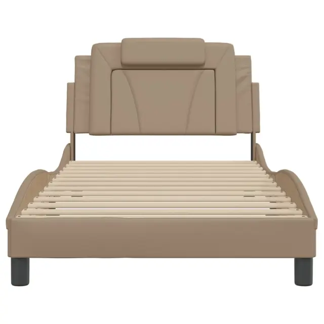Zagotovite si boljši spanec s tem posteljnim okvirjem z vzglavjem! Je prijeten dodatek za vsako spalnico. Trpežno umetno usnje: Vrhunsko umetno usnje je zelo vzdržljiv material. Je odporno na madeže, zato ga lahko preprosto čistite z vlažno krpo. Gladka površina mu prav tako daje razkošen videz in lepoto pravega usnja.Letvice iz vezanega lesa: Letvice iz vezanega lesa omogočajo dobro porazdelitev teže in zagotavljajo, da vzmetnica ostane na mestu ob vsakem zasuku in obračanju med spanjem.Odlična podpora: Vzglavna stranica je napolnjena s peno za izjemno mehkobo in optimalno udobje ter zagotavlja odlično podporo hrbtu, ko sedite v postelji in berete ali gledate televizijo.Valovita stranica: Valoviti videz posteljnega okvirja je eleganten in prefinjen. Dekorju v vašem domu dodaja sodoben in eleganten pridih ter tako postane osrednja točka spalnice. Dobro je vedeti:Vzmetnica ni priložena tej postelji. Ponujamo različno izbiro ležišč. V naši trgovini si lahko ogledate ustrezne vzmetnice.Posteljni okvir z vzglavjem:Barva: KapučinoMaterial: Umetno usnje (75 % polivinilklorid, 5 % bombaž, 20 % poliester), kovina, trdna borovina, vezan lesCelotne dimenzije: 218 x 105 x 74,5 cm (D x Š x V)Velikost primerne vzmetnice: 100 x 200 cm (Š x D) (vzmetnica ni priložena)Oblazinjeno vzglavje:Barva: KapučinoMaterial: Umetno usnje (75 % polivinilklorid, 5 % bombaž, 20 % poliester)Material polnila: PenaDimenzije: 100 x 15 x 49 cm (D x Š x V)Širina primerne vzmetnice: 100 cmPotrebno sestavljanje: DaPaket vsebuje:1 x Posteljni okvir z vzglavjem1 x Oblazinjeno vzglavje