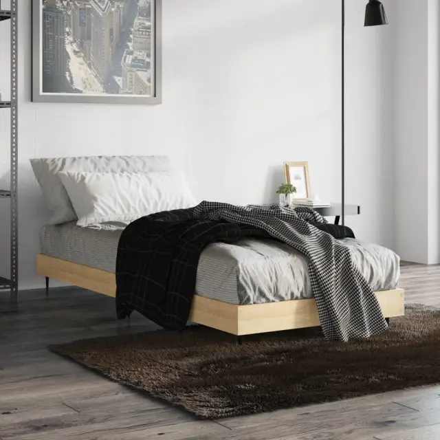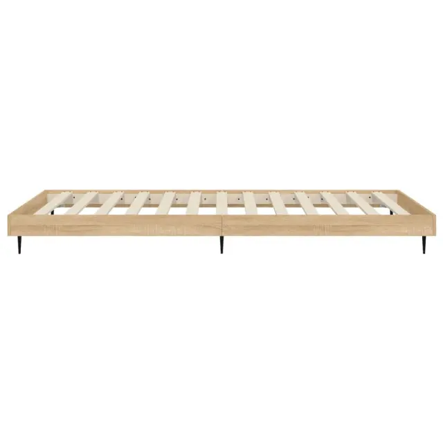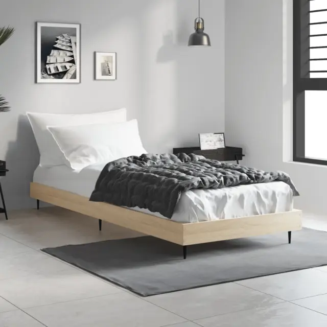 Zagotovite si boljši spanec s tem posteljnim okvirjem! Je prijeten dodatek za vsako spalnico. Vzdržljiv material: Inženirski les se ponaša z izjemno kakovostjo, gladko površino ter močjo, stabilnostjo in odpornostjo na vlago.Kovinske noge: Postelja je podprta s čvrstimi kovinskimi nogami, ki zagotavljajo njeno stabilnost, varnost in trdnost.Letvice iz vezanega lesa: Letvice iz vezanega lesa omogočajo dobro porazdelitev teže in zagotavljajo, da vzmetnica ostane na mestu ob vsakem zasuku in obračanju med spanjem. Dobro je vedeti:Vzmetnica ni priložena tej postelji. Ponujamo različno izbiro ležišč. V naši trgovini si lahko ogledate ustrezne vzmetnice.Barva: Sonoma hrastMaterial posteljnega okvirja: Inženirski les, kovinaMaterial letvic: Vezan lesCelotne dimenzije: 193 x 78 x 20 cm (D x Š x V)Velikost primerne vzmetnice: 75 x 190 cm (Š x D) (vzmetnica ni priložena)Potrebno sestavljanje: Da