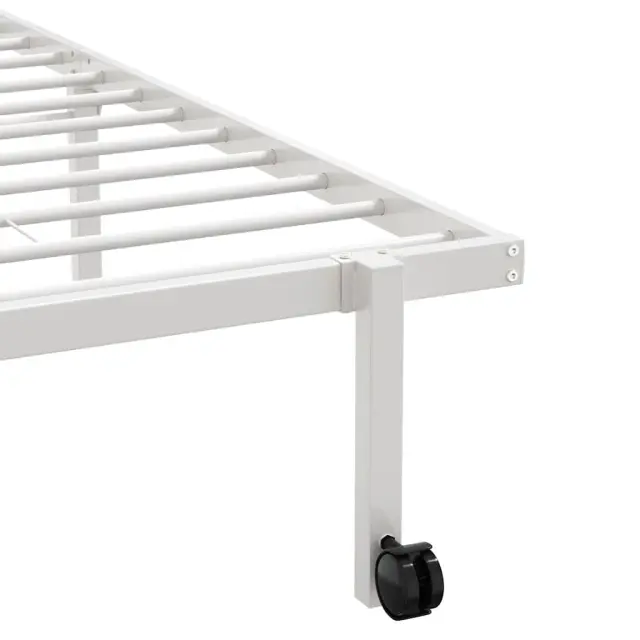 Če iščete trpežen posteljni okvir za svojo spalnico, je ta posteljni okvir z elegantno in brezčasno obliko popolna izbira za vas! Robustna konstrukcija: Okvir postelje je izdelan iz jekla, zelo trpežnega in močnega materiala, ki zagotavlja izjemno robustnost in stabilnost.Kovinski podstavek in noge z letvami: Kovinski posteljni okvir je opremljen z letvenim dnom in sredinskimi nogami, ki ležišču zagotavljajo potrebno podporo in zračnost.Zložljiva zasnova: Ta posteljni okvir je zaradi svoje zložljive zasnove zlahka zložljiv in ga je mogoče shraniti v kompaktne prostore, ko ga ne uporabljate, zato je idealen za majhne sobe ali tesne prostore.Enostavno premikanje: Ta posteljni okvir je opremljen s štirimi kolesi, ki omogočajo enostavno premikanje na poljubno lokacijo.Dodaten prostor za shranjevanje: Za vaše udobje je pod posteljo na voljo dodaten prostor za shranjevanje, ki omogoča, da se škatle za shranjevanje ne vidijo. Dobro je vedeti:Vzmetnica ni priložena tej postelji. Ponujamo različno izbiro ležišč. V naši trgovini si lahko ogledate ustrezne vzmetnice.Barva: BelaMaterial: JekloCelotne mere: 225 x 111,5 x 30 cm (d x š x v)Zložljive dimenzije: 111,5 x 30 x 107 cm (D x Š x V)Primerna velikost vzmetnice: 107 x 203 cm (Š x D) (vzmetnica ni priložena)Potrebno sestavljanje: Da