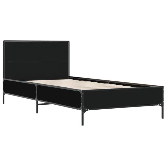 Zagotovite si boljši spanec s tem posteljnim okvirjem! Je prijeten dodatek za vsako spalnico. Vzdržljiv material: Inženirski les se ponaša z izjemno kakovostjo, gladko površino ter močjo, stabilnostjo in odpornostjo na vlago.Kovinske noge: Postelja je podprta s čvrstimi kovinskimi nogami, ki zagotavljajo njeno stabilnost, varnost in trdnost.Letvice iz vezanega lesa: Letvice iz vezanega lesa omogočajo dobro porazdelitev teže in zagotavljajo, da vzmetnica ostane na mestu ob vsakem zasuku in obračanju med spanjem.Odlična podpora: Vzglavje zagotavlja odlično oporo hrbtu, ko sedite v postelji in berete ali gledate televizijo. Dobro je vedeti:Vzmetnica ni priložena tej postelji. Ponujamo različno izbiro ležišč. V naši trgovini si lahko ogledate ustrezne vzmetnice.Barva: ČrnaMaterial posteljnega okvirja: Inženirski les, kovinaMaterial letvic: Vezan lesCelotne dimenzije: 203 x 101,5 x 80 cm (D x Š x V)Velikost primerne vzmetnice: 100 x 200 cm (Š x D) (vzmetnica ni priložena)Maksimalna nosilnost: 100 kgPotrebno sestavljanje: Da