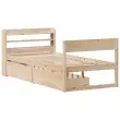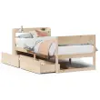 Zagotovite si boljši spanec s tem posteljnim okvirjem! Je prijeten dodatek za vsako spalnico. Stabilen in dolgotrajen okvir: Trdna borovina je znana po svoji trdnosti in trajnosti. Ravni vzorci in značilni vozli prispevajo k njenemu rustikalnemu čaru.Podnožje z letvami za optimalno podporo: Za podporo in zračnost ležišča je posteljni okvir opremljen z letvenim dnom.Popolnoma izkoriščen prostor: Ta posteljni okvir ima spodaj dva predala, ki omogočata shranjevanje predmetov, kot so dodatna posteljnina, sezonska oblačila in igrače.Veliko prostora za shranjevanje: To elegantno posteljno vzglavje ima tri priročne police, ki ponujajo veliko prostora za shranjevanje, da bodo vaše večerne potrebščine na dosegu roke.Samostoječe vzglavje: Samostoječe vzglavje ponuja brezskrbno rešitev za enostavno postavitev in premikanje brez potrebe po vgradnji na steno. Dobro je vedeti:Vzmetnica ni priložena tej postelji. Ponujamo različno izbiro ležišč. V naši trgovini si lahko ogledate ustrezne vzmetnice.Material: Trdna borovina (neobdelana)Material letvic: Vezan lesCelotne dimenzije: 208 x 85 x 82 cm (D x Š x V)Velikost primerne vzmetnice: 75 x 190 cm (Š x D) (vzmetnica ni priložena)Dimenzije predala: 90,5 x 47 x 25,5 cm (D x Š x V)S policami za shranjevanjePotrebno sestavljanje: DaPaket vsebuje:1 x Posteljni okvir1 x Vzglavje2 x Predal