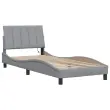 S tem posteljnim okvirjem z vzglavnikom si zagotovite mirnejši spanec! Trpežno blago: Blago zagotavlja preprost in čist videz, poleg tega pa je zračno in trpežno.Podporne noge: Postelja je podprta s čvrstimi nogami, ki zagotavljajo njeno stabilnost, varnost in trdnost.Letvice iz vezanega lesa: Letvice iz vezanega lesa omogočajo dobro porazdelitev teže in zagotavljajo, da vzmetnica ostane na mestu ob vsakem zasuku in obračanju med spanjem.Odlična podpora: Vzglavna stranica je napolnjena s PP vlakni za izjemno mehkobo in optimalno udobje ter zagotavlja odlično podporo hrbtu, ko sedite v postelji in berete ali gledate televizijo.LED osvetlitev za prijeten ambient: To posteljo odlikuje LED osvetlitev, ki jo je mogoče preprosto nastaviti in tako ustvariti posebno svetlobno predstavo. Prilagodite lahko načine, barve in svetlost ter tako izboljšate vzdušje v notranjem prostoru. Dobro je vedeti:Vzmetnica ni priložena tej postelji. Ponujamo različno izbiro ležišč. V naši trgovini si lahko ogledate ustrezne vzmetnice.Izdelek ima priključek USB, ki zahteva certificiran vir napajanja 5 V USB (ni priložen).Režete lahko samo del s simbolom škarij in samo del z USB bo deloval kot prej.Posteljni okvir:Barva: Svetlo sivaMaterial: Tkanina (100 % poliester), kovina, vezan les, inženirski lesCelotne dimenzije: 218 x 95 x 74,5 cm (D x Š x V)Velikost primerne vzmetnice: 90 x 200 cm (Š x D) (vzmetnica ni priložena)Potrebno sestavljanje: DaOblazinjeno vzglavje:Barva: Svetlo sivaMaterial: Blago (100 % poliester)Material polnila: PP vlaknaDimenzije: 90 x 3 x 45 cm (D x Š x V)LED trak s silikonsko cevjo in pipo:Dolžina: 55 cmNapetost: DC 5 VDolžina kabla USB : 150 cmDolžina električnega kabla: 30 cmIP ocena: IP65S simbolom za rezanje s škarjamiPaket vsebuje:1 x Posteljni okvir1 x Oblazinjeno vzglavje1 x LED trak Vir svetlobe tega izdelka ni zamenljiv. Ko vir svetlobe doseže konec življenjske dobe, izdelek zamenjajte. Samo za notranjo uporabo, ne uporabljajte tega izdelka na prostem. Izdelek ima USB priključek, vendar certificiranega 5V USB napajalnika ni priloženega. Prosimo, uporabite samo certificiran DC 5V vhod. Višja napetost lahko povzroči pregrevanje, kar lahko povzroči poškodbe naprave in potencialno nevarnost pregrevanja in požara. Fleksibilnega kabla nizkonapetostnih luči ni mogoče zamenjati, in ne uporabljajte nizkonapetostnih luči, če je kabel poškodovan. Ne povežite LED svetilke s certificiranim 5V USB napajalnikom med namestitvijo in vzdrževanjem. Te naprave ne smejo uporabljati otroci, mlajši od 14 let, in osebe z zmanjšanimi fizičnimi, čutnimi ali duševnimi sposobnostmi ali pomanjkanjem izkušenj in znanja. NE upoštevajte tega izdelka v prisotnosti eksplozivnih snovi, kot so vnetljivi tekočine, plini in prah ali pri ekstremnih temperaturah nad 50 stopinjami Celzija.