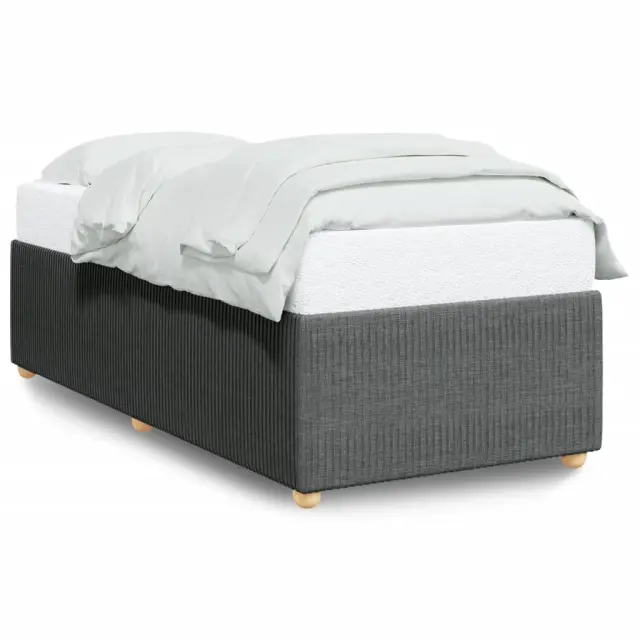 Zagotovite si boljši spanec s tem posteljnim okvirjem! Je prijeten dodatek za vsako spalnico. Mehak in udoben material: Vlažna tkanina iz žameta ima mehko in gladko površino, ki zagotavlja prijeten občutek ter vam zagotavlja toploto in popolno udobje.Letvice za optimalno podporo: Ta posteljni okvir je opremljen z letvicami, ki zagotavljajo osnovno podporo in zračnost vašega ležišča.Stabilne in vzdržljive noge: Ta postelja je podprta z robustnimi nogami, ki zagotavljajo stabilnost, varnost in trdnost. Dobro je vedeti:Vzmetnica ni priložena tej postelji. Ponujamo različno izbiro ležišč. V naši trgovini si lahko ogledate ustrezne vzmetnice.Barva: Temno sivaMaterial: Blago (100 % poliester), vezan les, konstruiran lesDimenzije: 190 x 90 x 46 cm (D x Š x V)Velikost primerne vzmetnice: 90 x 190 cm (enojna) (Š x D) (vzmetnica ni priložena)Utrjene plastične nogicePotrebno sestavljanje: Da