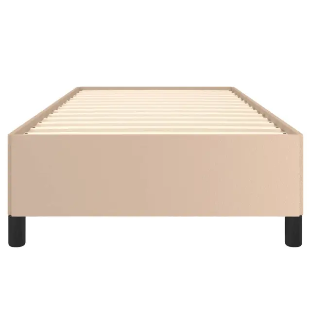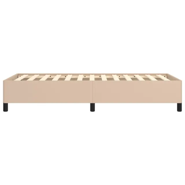 Zagotovite si boljši spanec s tem posteljnim okvirjem! Je prijeten dodatek za vsako spalnico. Trpežno umetno usnje: Vrhunsko umetno usnje je zelo vzdržljiv material. Je odporno na madeže, zato ga lahko preprosto čistite z vlažno krpo. Gladka površina mu prav tako daje razkošen videz in lepoto pravega usnja.Podporne noge: Postelja je podprta s čvrstimi nogami, ki zagotavljajo njeno stabilnost, varnost in trdnost.Letvice iz vezanega lesa: Letvice iz vezanega lesa omogočajo dobro porazdelitev teže in zagotavljajo, da vzmetnica ostane na mestu ob vsakem zasuku in obračanju med spanjem. Opomba:Paket vsebuje samo posteljni okvir. Vzmetnica ni priložena. V naši trgovini si lahko ogledate ustrezne vzmetnice.Vsakemu izdelku je priložen priročnik za enostavno sestavljanje.Barva: KapučinoMaterial: Umetno usnje (75 % polivinilklorid, 5 % bombaž, 20 % poliester), vezan les, konstruiran lesCelotne dimenzije: 193 x 93 x 35 cm (D x Š x V)Velikost primerne vzmetnice: 90 x 190 cm (Š x D) (vzmetnica ni priložena)