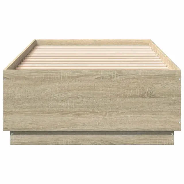 Zagotovite si boljši spanec s tem posteljnim okvirjem! Je prijeten dodatek za vsako spalnico. Vzdržljiv material: Inženirski les se ponaša z izjemno kakovostjo, gladko površino ter močjo, stabilnostjo in odpornostjo na vlago.Trdne letvice: Letvice iz vezanega lesa omogočajo dobro porazdelitev teže in zagotavljajo, da vzmetnica ostane na mestu ob vsakem zasuku in obračanju med spanjem.Moderna zasnova: Svojim notranjim prostorom dodajte moderen stil! Moderen stil notranjih prostorov vključuje čiste linije, minimalističen videz in naravno svetlobo. Dobro je vedeti:Vzmetnica ni priložena tej postelji. Ponujamo različno izbiro ležišč. V naši trgovini si lahko ogledate ustrezne vzmetnice.Barva: Sonoma hrast Material posteljnega okvirja: Inženirski lesMaterial letvic: Vezan lesCelotne dimenzije: 203 x 102 x 40 cm (D x Š x V)Velikost primerne vzmetnice: 100 x 200 cm (Š x D) (vzmetnica ni priložena)Potrebno sestavljanje: Da