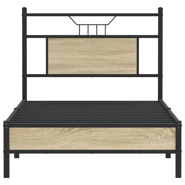 Zagotovite si boljši spanec s tem posteljnim okvirjem! Je prijeten dodatek za vsako spalnico. Stabilen in dolgotrajen okvir: Jeklo je močno, stabilno in trpežno, zato je idealna izbira za številne aplikacije, od proizvodnje pohištva do gradbeništva.Vsestransko vzglavje: Ta postelja je opremljena z vzglavjem, ki zagotavlja odlično oporo hrbtu, ko sedite v postelji in berete ali gledate televizijo, hkrati pa služi tudi kot dekorativni element.Dodaten prostor za shranjevanje: Za udobje ima posteljni podstavek pod seboj dodaten prostor, v katerem lahko shranite škatle za shranjevanje, ki niso vidne.Podnožje z letvami za optimalno podporo: Kovinski posteljni okvir je opremljen z letvenim dnom, ki zagotavlja oporo in zračnost ležišča. Dobro je vedeti:Vzmetnica ni priložena tej postelji. Ponujamo različno izbiro ležišč. V naši trgovini si lahko ogledate ustrezne vzmetnice.Barva: Sonoma hrastMaterial: Inženirski les in jekloCelotne dimenzije: 196 x 80,5 x 91,5 cm (D x Š x V)Višina prostora pod posteljo: 27 cmVelikost primerne vzmetnice: 75 x 190 cm (Š x D) (vzmetnica ni priložena)Z vzglavjemPotrebno sestavljanje: Da