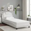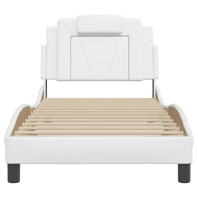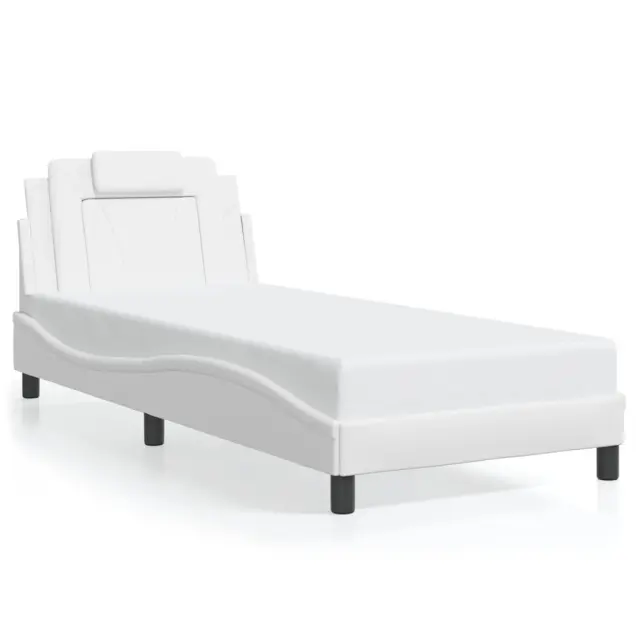 Zagotovite si boljši spanec s tem posteljnim okvirjem z vzglavjem! Je prijeten dodatek za vsako spalnico. Trpežno umetno usnje: Vrhunsko umetno usnje je zelo vzdržljiv material. Je odporno na madeže, zato ga lahko preprosto čistite z vlažno krpo. Gladka površina mu prav tako daje razkošen videz in lepoto pravega usnja.Letvice iz vezanega lesa: Letvice iz vezanega lesa omogočajo dobro porazdelitev teže in zagotavljajo, da vzmetnica ostane na mestu ob vsakem zasuku in obračanju med spanjem.Odlična podpora: Vzglavna stranica je napolnjena s peno za izjemno mehkobo in optimalno udobje ter zagotavlja odlično podporo hrbtu, ko sedite v postelji in berete ali gledate televizijo.Valovita stranica: Valoviti videz posteljnega okvirja je eleganten in prefinjen. Dekorju v vašem domu dodaja sodoben in eleganten pridih ter tako postane osrednja točka spalnice. Dobro je vedeti:Vzmetnica ni priložena tej postelji. Ponujamo različno izbiro ležišč. V naši trgovini si lahko ogledate ustrezne vzmetnice.Posteljni okvir z vzglavjem:Barva: BelaMaterial: Umetno usnje (75 % polivinilklorid, 5 % bombaž, 20 % poliester), kovina, trdna borovina, vezan lesCelotne dimenzije: 218 x 95 x 74,5 cm (D x Š x V)Velikost primerne vzmetnice: 90 x 200 cm (Š x D) (vzmetnica ni priložena)Oblazinjeno vzglavje:Barva: BelaMaterial: Umetno usnje (75 % polivinilklorid, 5 % bombaž, 20 % poliester)Material polnila: PenaDimenzije: 90 x 15 x 49 cm (D x Š x V)Primerna širina vzmetnice: 90 cmPotrebno sestavljanje: DaPaket vsebuje:1 x Posteljni okvir z vzglavjem1 x Oblazinjeno vzglavje