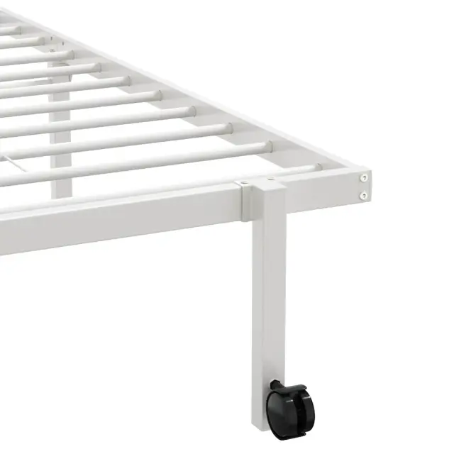 Če iščete trpežen posteljni okvir za svojo spalnico, je ta posteljni okvir z elegantno in brezčasno obliko popolna izbira za vas! Robustna konstrukcija: Okvir postelje je izdelan iz jekla, zelo trpežnega in močnega materiala, ki zagotavlja izjemno robustnost in stabilnost.Kovinski podstavek in noge z letvami: Kovinski posteljni okvir je opremljen z letvenim dnom in sredinskimi nogami, ki ležišču zagotavljajo potrebno podporo in zračnost.Zložljiva zasnova: Ta posteljni okvir je zaradi svoje zložljive zasnove zlahka zložljiv in ga je mogoče shraniti v kompaktne prostore, ko ga ne uporabljate, zato je idealen za majhne sobe ali tesne prostore.Enostavno premikanje: Ta posteljni okvir je opremljen s štirimi kolesi, ki omogočajo enostavno premikanje na poljubno lokacijo.Dodaten prostor za shranjevanje: Za vaše udobje je pod posteljo na voljo dodaten prostor za shranjevanje, ki omogoča, da se škatle za shranjevanje ne vidijo. Dobro je vedeti:Vzmetnica ni priložena tej postelji. Ponujamo različno izbiro ležišč. V naši trgovini si lahko ogledate ustrezne vzmetnice.Barva: BelaMaterial: JekloCelotne mere: 222 x 94,5 x 30 cm (d x š x v)Zložljive dimenzije: 94,5 x 30 x 107 cm (D x Š x V)Velikost primerne vzmetnice: 90 x 200 cm (Š x D) (vzmetnica ni priložena)Potrebno sestavljanje: Da