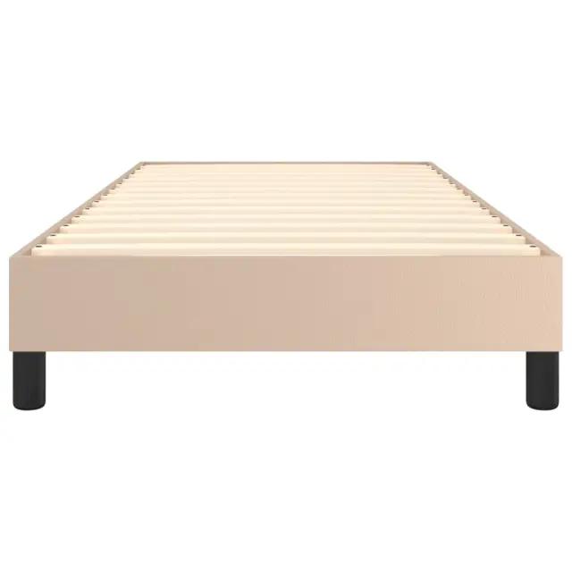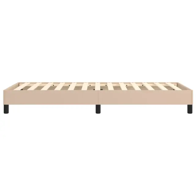 Zagotovite si boljši spanec s tem posteljnim okvirjem! Je prijeten dodatek za vsako spalnico. Trpežno umetno usnje: Vrhunsko umetno usnje je zelo vzdržljiv material. Je odporno na madeže, zato ga lahko preprosto čistite z vlažno krpo. Gladka površina mu prav tako daje razkošen videz in lepoto pravega usnja.Podporne noge: Postelja je podprta s čvrstimi nogami, ki zagotavljajo njeno stabilnost, varnost in trdnost.Letvice iz vezanega lesa: Letvice iz vezanega lesa omogočajo dobro porazdelitev teže in zagotavljajo, da vzmetnica ostane na mestu ob vsakem zasuku in obračanju med spanjem. Dobro je vedeti:Vzmetnica ni priložena tej postelji. Ponujamo različno izbiro ležišč. V naši trgovini si lahko ogledate ustrezne vzmetnice.Barva: KapučinoMaterial: Umetno usnje (75 % polivinilklorid, 5 % bombaž, 20 % poliester), vezan les, konstruiran lesCelotne dimenzije: 203 x 100 x 25 cm (D x Š x V)Velikost primerne vzmetnice: 100 x 200 cm (Š x D) (vzmetnica ni priložena)