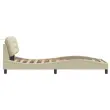 Zagotovite si boljši spanec s tem posteljnim okvirjem z vzglavjem! Je prijeten dodatek za vsako spalnico. Tkanina z dolgo življenjsko dobo: Tkanina je preprostega in čistega videza, hkrati pa je zračna, prijazna do kože in vzdržljiva.Letvice iz vezanega lesa: Letvice iz vezanega lesa omogočajo dobro porazdelitev teže in zagotavljajo, da vzmetnica ostane na mestu ob vsakem zasuku in obračanju med spanjem.Odlična podpora: Vzglavna stranica je napolnjena s PP vlakni za izjemno mehkobo in optimalno udobje ter zagotavlja odlično podporo hrbtu, ko sedite v postelji in berete ali gledate televizijo.Priročna zasnova: Vzglavna stranica ima zadrgo za preprosto namestitev, pripenjala na zadnji strani pa se lahko uporabijo za pritrditev LED lučk.Valovita stranica: Valoviti videz posteljnega okvirja je eleganten in prefinjen. Dekorju v vašem domu dodaja sodoben in eleganten pridih ter tako postane osrednja točka spalnice. Dobro je vedeti:Vzmetnica ni priložena tej postelji. Ponujamo različno izbiro ležišč. V naši trgovini si lahko ogledate ustrezne vzmetnice.Posteljni okvir z vzglavjem:Barva: KremMaterial: Tkanina (100 % poliester), kovina, trdna borovina, vezan les, inženirski lesCelotne dimenzije: 218 x 95 x 74,5 cm (D x Š x V)Velikost primerne vzmetnice: 90 x 200 cm (Š x D) (vzmetnica ni priložena)Oblazinjeno vzglavje:Barva: KremMaterial: Blago (100 % poliester)Material polnila: PP vlaknaDimenzije: 100 x 15 x 48 cm (D x Š x V)Primerna širina vzmetnice: 90 cmPotrebno sestavljanje: DaPaket vsebuje:1 x Posteljni okvir z vzglavjem1 x Oblazinjeno vzglavje