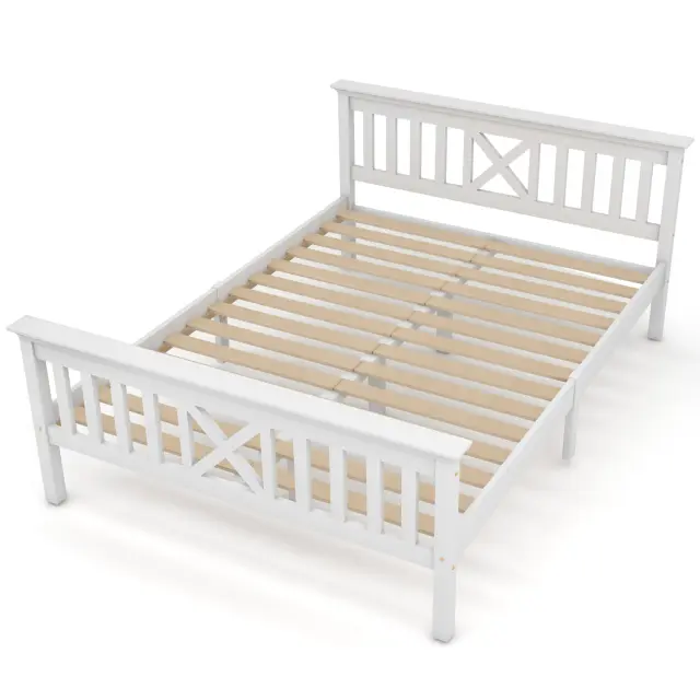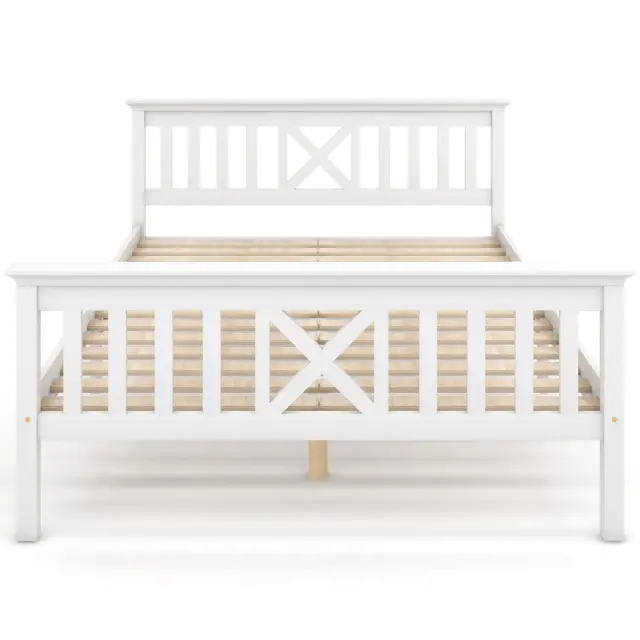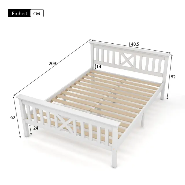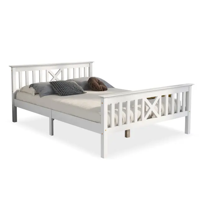 Posteljni okvir iz masivnega borovega lesa z vzglavjem, bel - 140x200 cm
